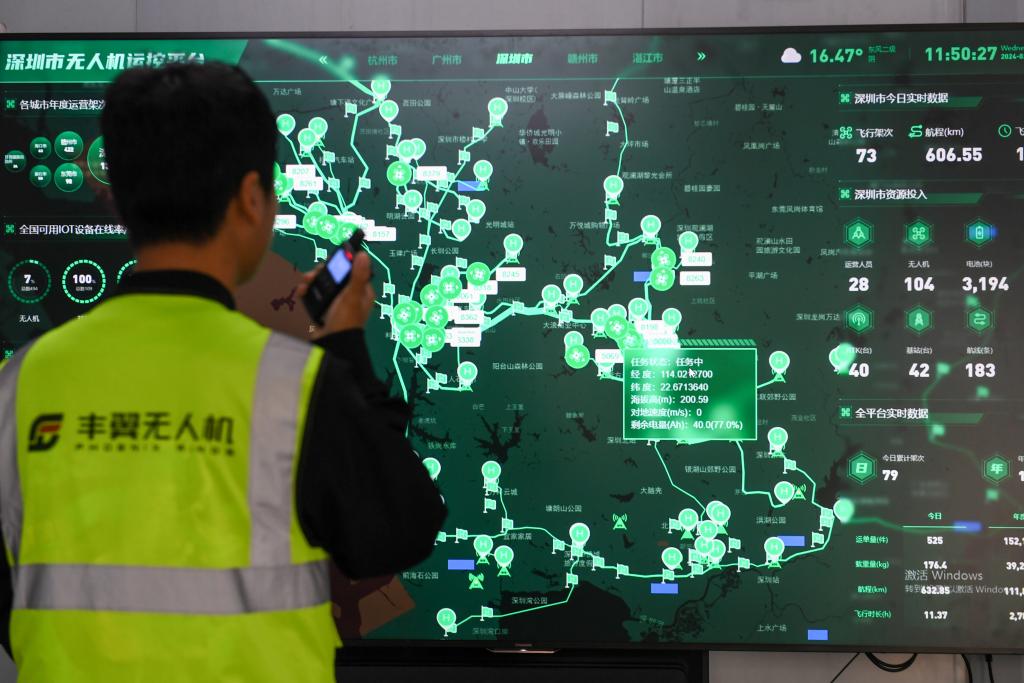 ??在豐翼科技(深圳)有限公司運(yùn)營中心,機(jī)長對無人機(jī)進(jìn)行調(diào)度。