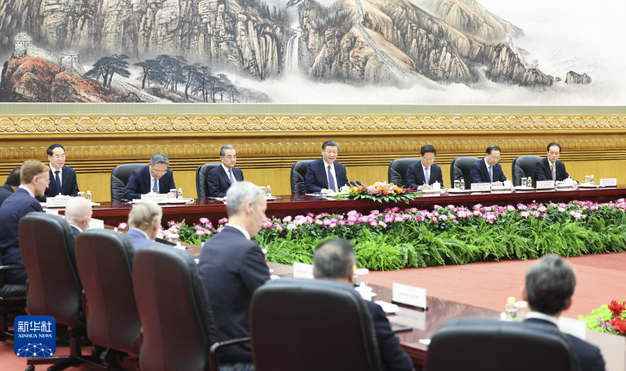 ??3月27日,國(guó)家主席習(xí)近平在北京人民大會(huì)堂集體會(huì)見美國(guó)工商界和戰(zhàn)略學(xué)術(shù)界代表。新華社記者 申宏 攝