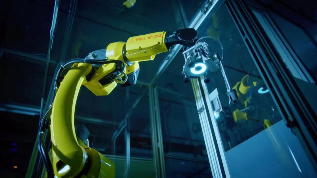 ??在九牧集團精密注塑車間,數(shù)臺自動搬運機器人在車間與倉庫間穿梭,注塑機臺上的機械臂搭載紅外攝像頭,自動抓取物料。